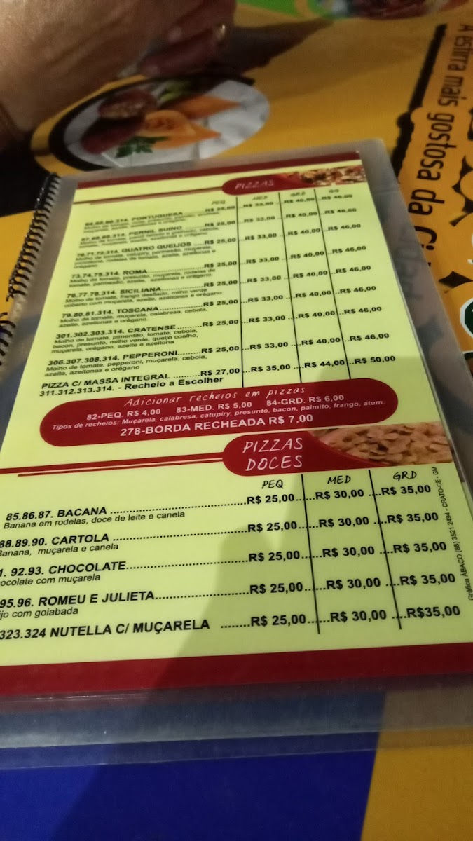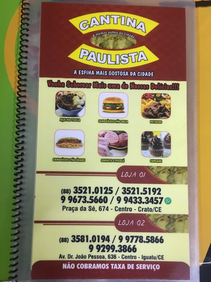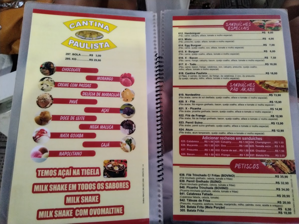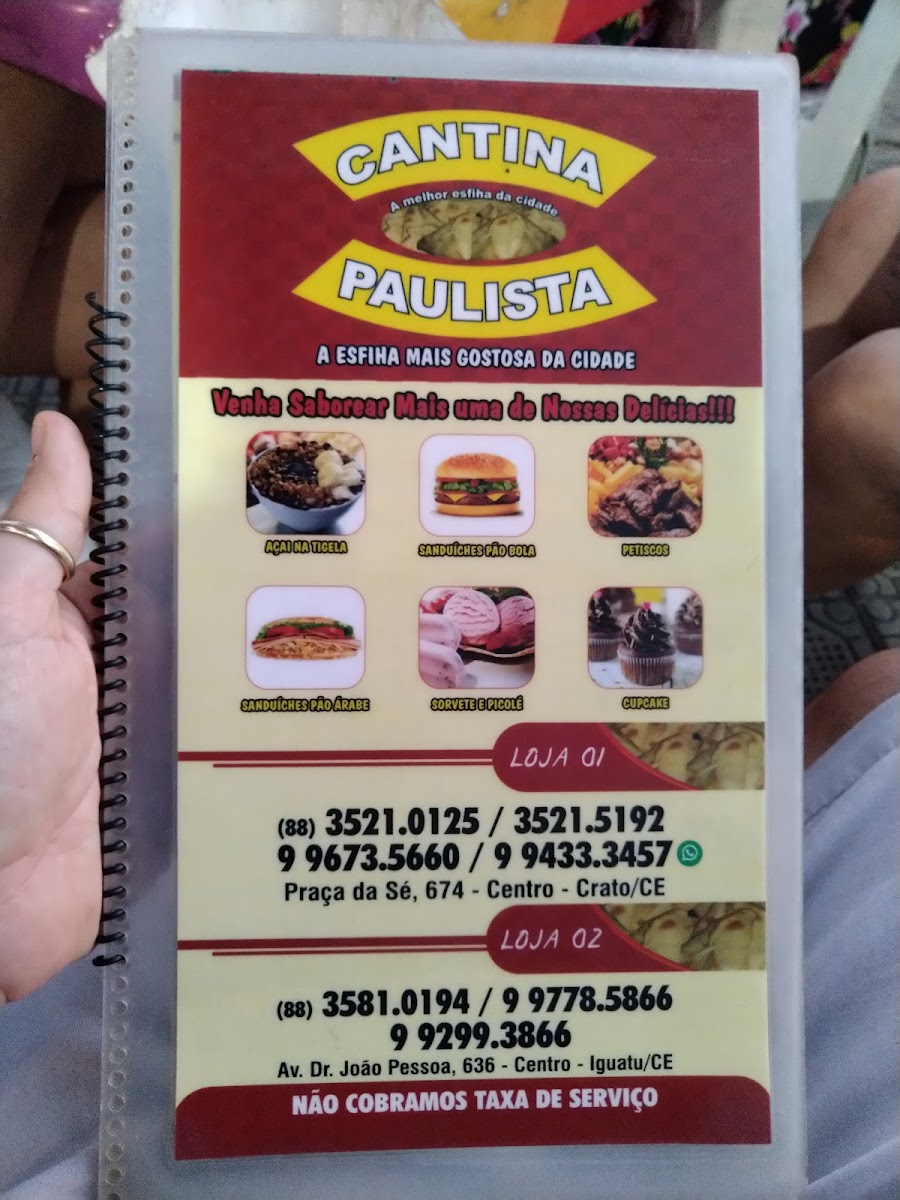 From a reviewer's perspective, the menu at Cantina Paulista on R. Dr. Miguel Lima Verde in Crato offers a vibrant mix of Brazilian and casual comfort foods that cater to varied tastes. Pizza lovers can choose from Pequena, Média, Grande, and GG sizes, while fans of sandwiches will find classics like Misto Quente Com Frango, Misto Quente Com Presunto, Queijo Quente, and X-Burguer. The Beirutes, available in Pequena, Média, Grande, and GG, along with Fatias de Beirute de Frango and de Calabresa, provide convenient, shareable options. For those seeking savory pastries, the Calzone selection-such as Calzone De Frango - 6 Fatias, Calzone 3 Queijos - 6 Fatias, Calzone Calabresa - 6 Fatias, Calzone De Presunto - 6 Fatias, and Calzone De Carne De Sol - 6 Fatias-offers hearty, filling choices. The Esfihas range impresses with both traditional flavors like Esfiha De Queijo, Esfiha De Carne, Esfiha Só Frango, Esfiha Só Calabresa, and Esfiha Só Carne De Sol, and sweet variations including Esfiha De Chocolate E Muçarela, Esfiha De Nutella E Muçarela, Esfiha De Banana, Muçarela E Canela, Esfiha De Brigadeiro E Muçarela, and Esfiha De Goiabada E Queijo. Special esfihas like Esfiha De Queijo C/ Catupiry, Esfiha De Queijo C/ Cheddar, Esfiha De Carne C/ Catupiry, Esfiha De Carne C/ Cheddar, and Esfiha De Frango Com Catupiry allow for indulgent experimentation, while options to create 3 Sabores or 4 Sabores combinations add customizable flair. Quick bites like Kibe Frito, and hearty Petiscos such as Filé Trinchado Com Fritas, Batata Frita, and Batata Frita C/ Bacon E Cheddar, complement the main menu. Drinks are plentiful, from Água Mineral and Coca Cola Original to local favorites like Cajuína, alongside fruit-based beverages like Suco De Polpa Com Leite, Suco De Polpa Com Água, Suco De Laranja, and Limonada. Sweet finishes include Pudim 150gr and branded treats like KIT KAT and SNIKERS, while milkshake enthusiasts can enjoy Milk Shake De Morango, Milk Shake De Chocolate, Milk Shake Paçoca, and Milk Shake De Ovomaltine. Overall, Cantina Paulista presents a menu that balances traditional Brazilian flavors with accessible, comfort-oriented dishes, all clearly structured to please both solo diners and groups looking to share a variety of options.